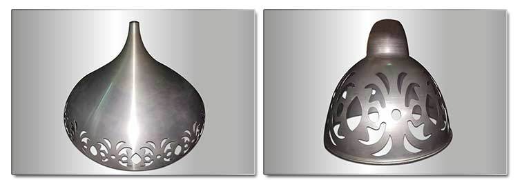 傳統(tǒng)方法以方、圓形狀為主,折彎、拼縫、焊接等,工裝夾具復(fù)雜,工序很多,基于平面加工構(gòu)思設(shè)計(jì)。折彎前加工的孔,在折彎后會(huì)發(fā)生變形及位置誤差等缺陷。